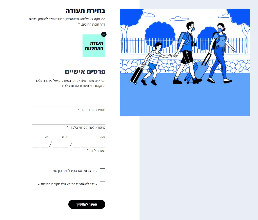 *ניתן להנפיק דרכון ירוק רק בעוד לקראת 15/2/2021